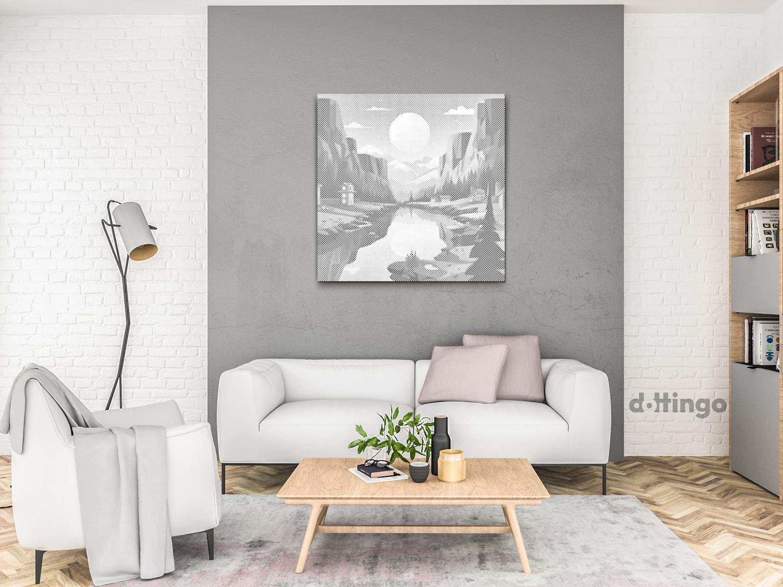 Kaj je v kompletu DottingPoints? Platno, vnaprej natisnjeno s krogi različnih velikosti in črnim flomastrom.