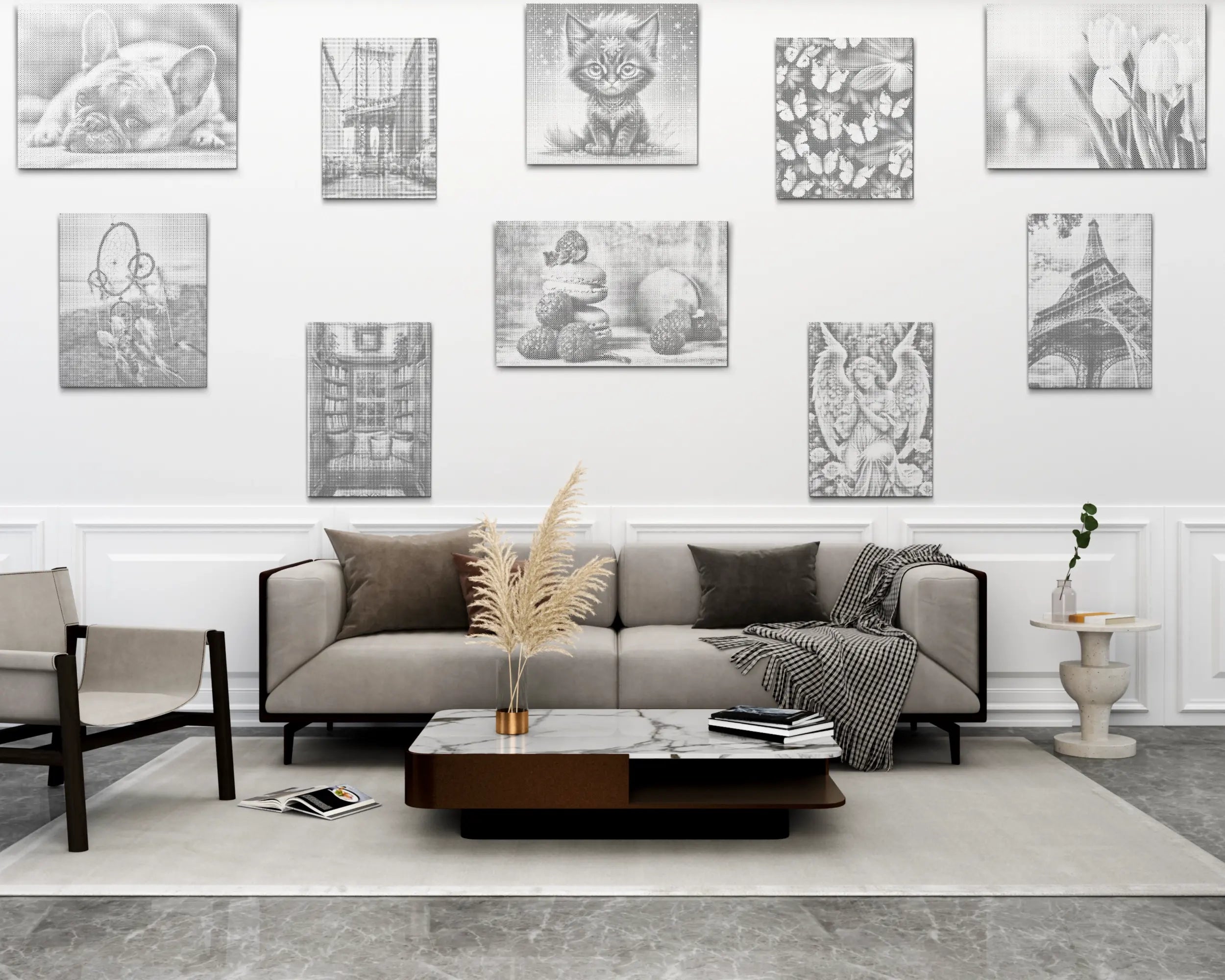 Leseni notranji okvir - raztegnjeno platno olajša slikanje in vam omogoča, da po dokončanju sliko obesite.